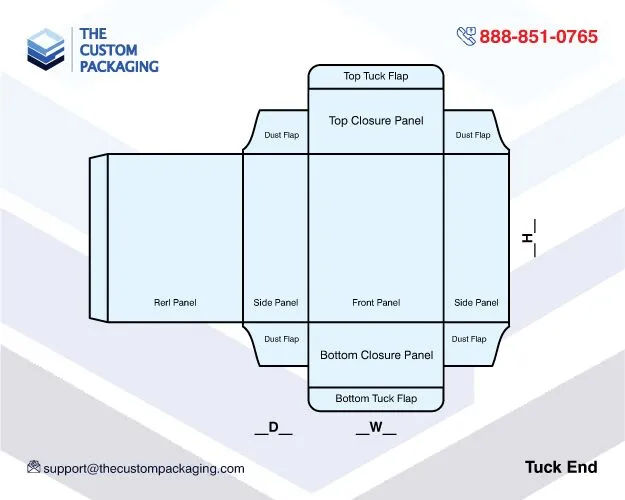 Our advanced offset and digital printing technique is very effective in printing personalized tuck end packaging. The tuck-end covers can be seen both on the top and bottom of the packaging. You can print some typography on the inside or outside of tuck end flaps. You can also give a 3D effect to printed tuck end packaging using our mockup techniques. We can make every kind of custom printing per your orders.